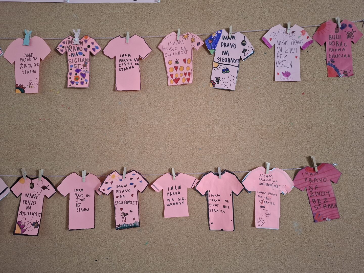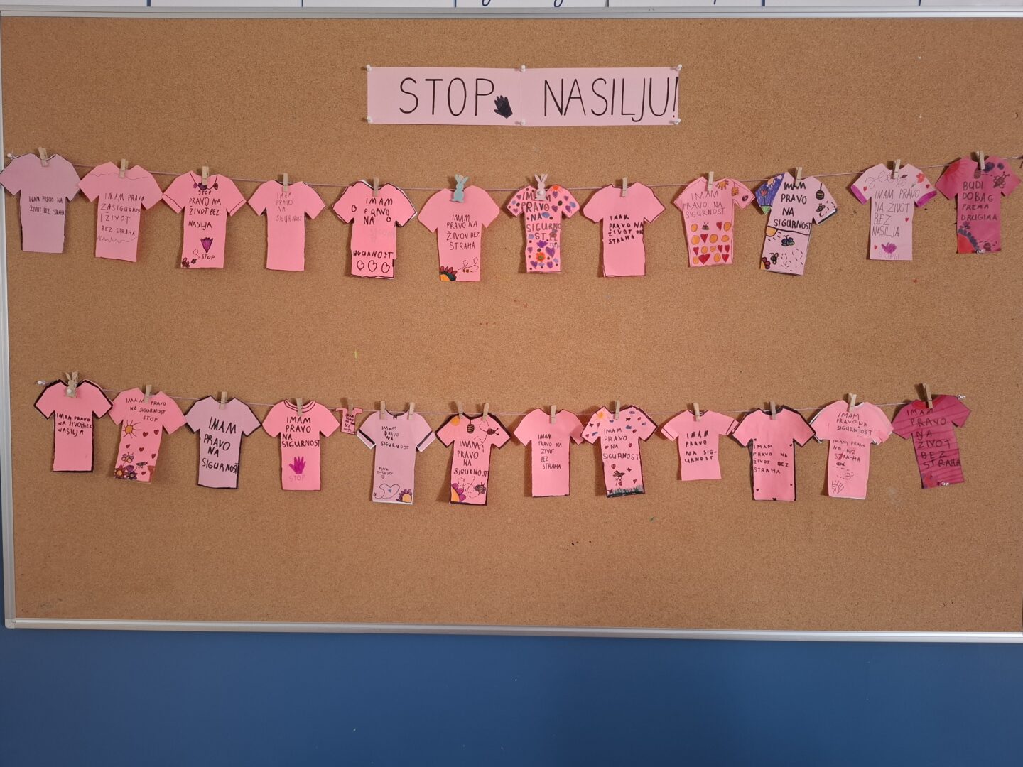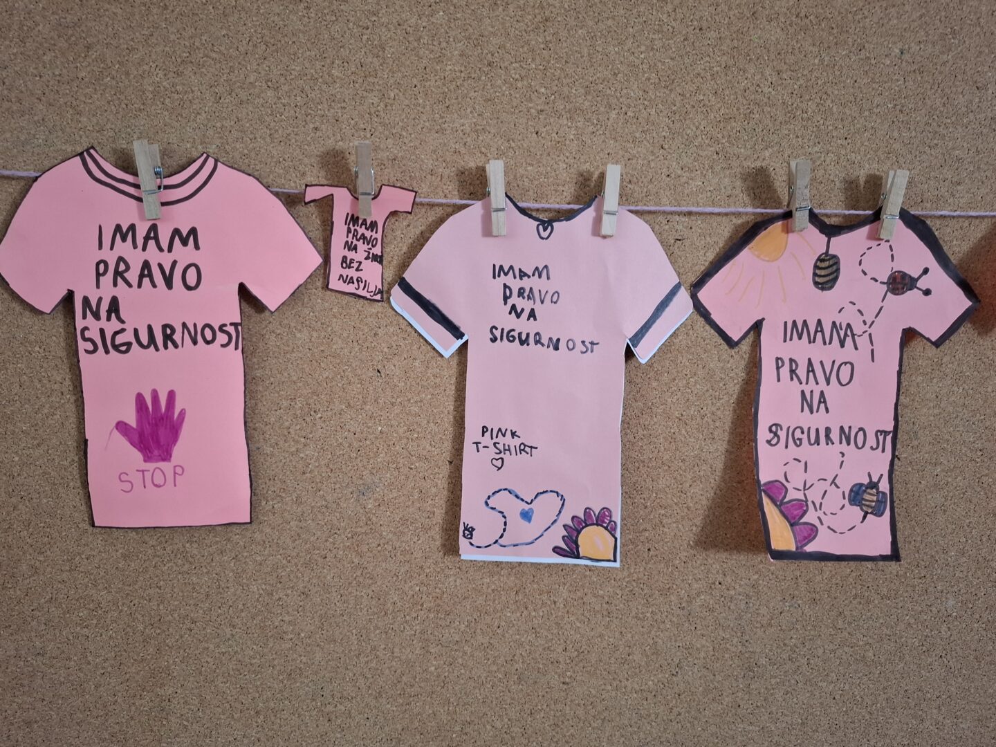 Danas su učenici 1.a, zajedno sa svojim učiteljicama Majom i Tanjom, obilježili Dan ružičastih majica – dan borbe protiv vršnjačkog nasilja. S učenicima su učiteljice razgovarale o vršnjačkom nasilju i objasnile im simboliku ružičaste boje majice. Osmislili smo kratke i jasne poruke protiv nasilja, poruke o dječjim pravima na sigurnost i život bez straha.