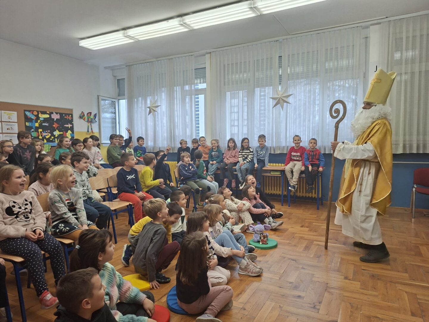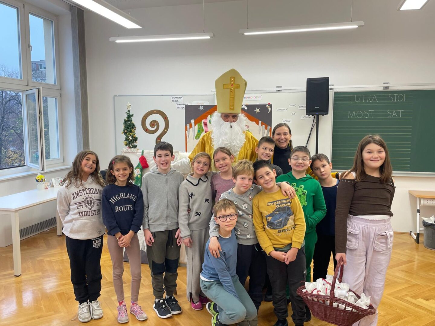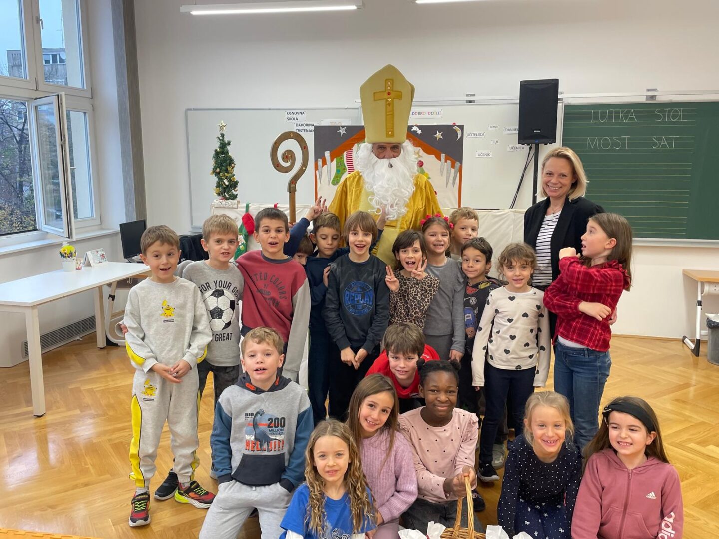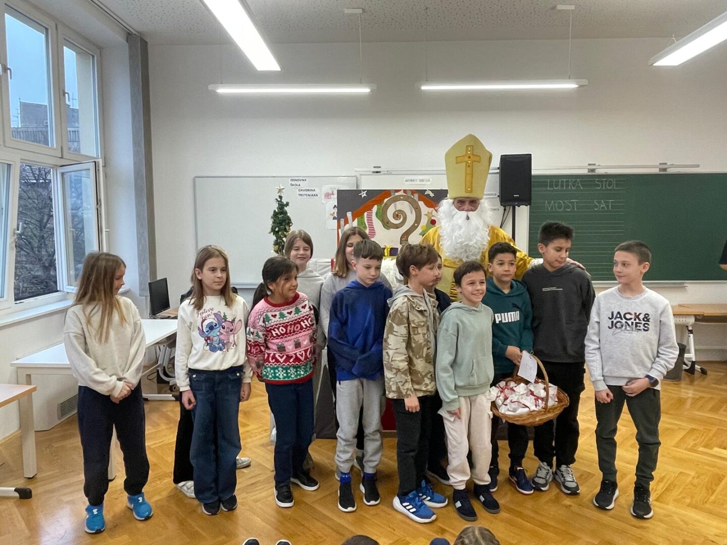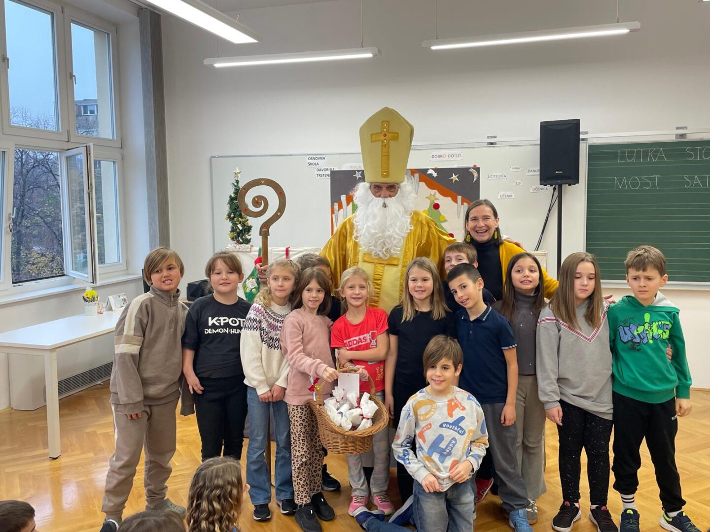 Djeca su zaista uživala u ovom blagdanskom lutkarskom mjuziklu, a pravo iznenađenje uslijedilo je na kraju, kada nam je u učionicu ušetao sveti Nikola s darovima.
