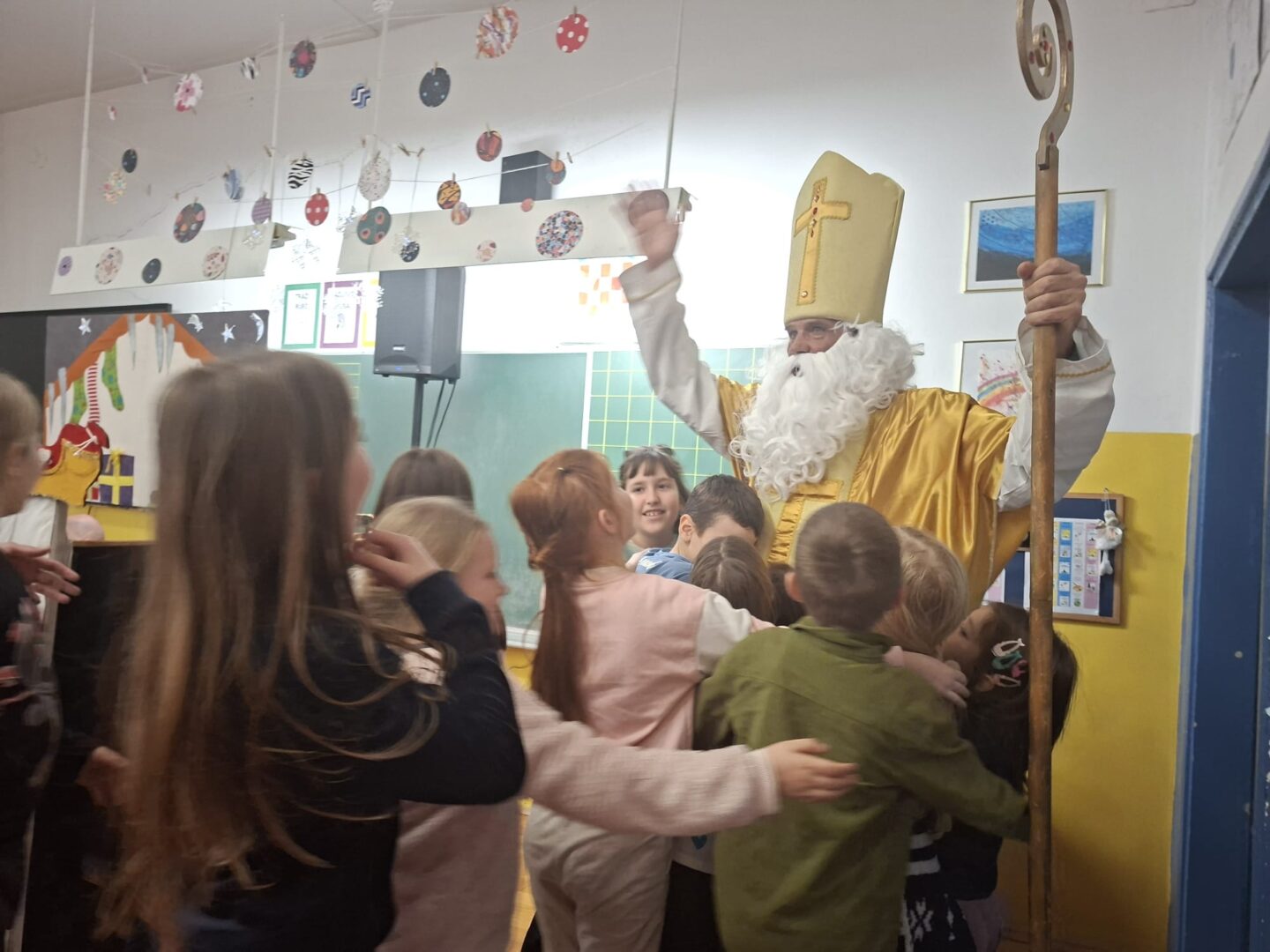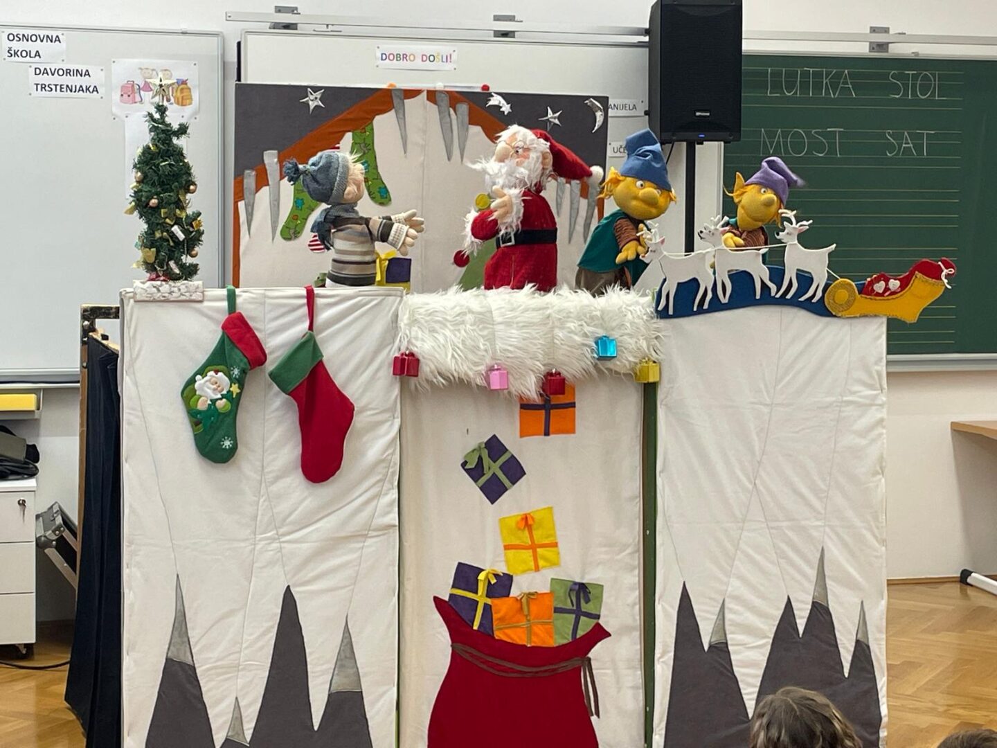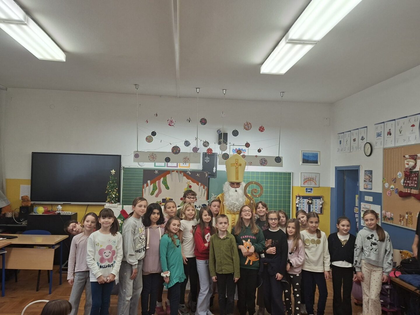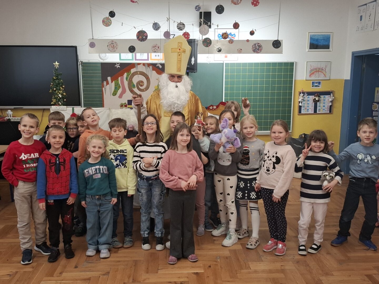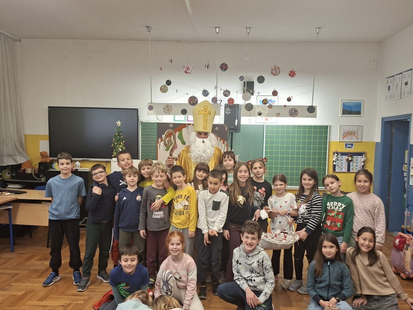 Djeca su zaista uživala u ovom blagdanskom lutkarskom mjuziklu, a pravo iznenađenje uslijedilo je na kraju, kada nam je u učionicu ušetao sveti Nikola s darovima.